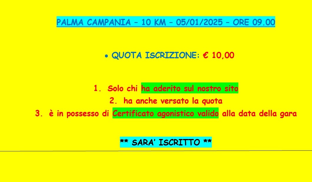 | Luogo : PALMA CAMPANIA - ORE 09.00 | ||||