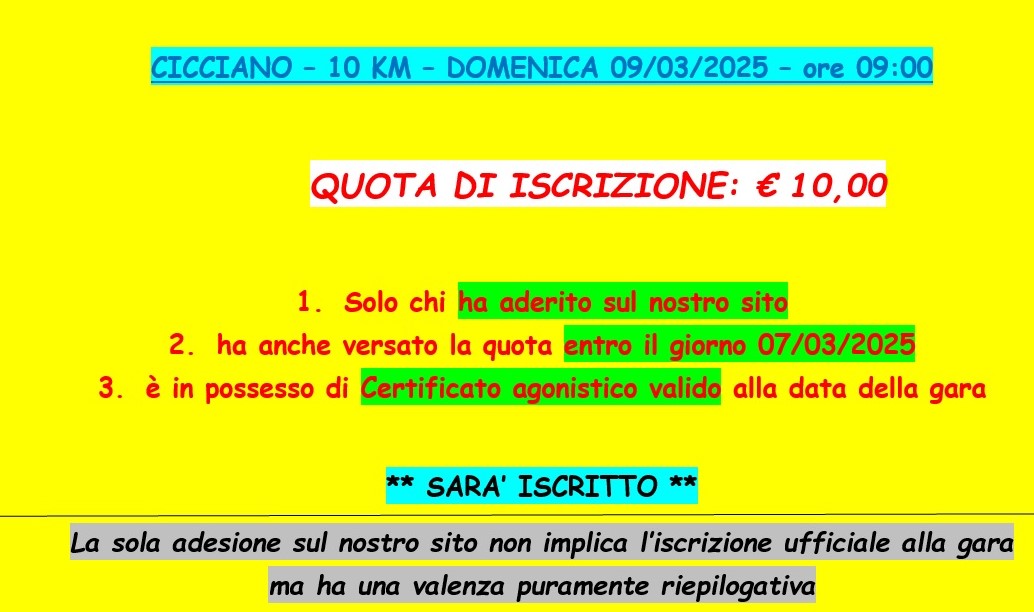 | Luogo : CICCIANO - ORE 09:00 | ||||